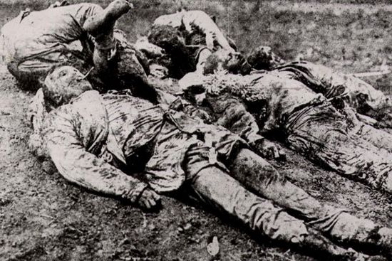 亚美尼亚的武装组织在步兵团的军事力量支持下,对居住在霍贾利的市民进行了残忍的大屠杀。结果如下:613人被杀,其中有63名儿童、106名妇女和70名老人.8个家庭完全被毁.25名儿童失去双亲.130名儿童失去了父母之一.487人受伤,其中有76名儿童.1275人被俘.150人在军事行动中失踪.对该国以及市民的个人财产造成的损失不可估量。总损失相当于五十亿(马纳特)(按照1992年1月4日的价格计算)。