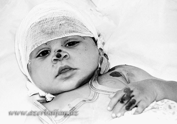 亚美尼亚的武装组织在步兵团的军事力量支持下,对居住在霍贾利的市民进行了残忍的大屠杀。结果如下:613人被杀,其中有63名儿童、106名妇女和70名老人.8个家庭完全被毁.25名儿童失去双亲.130名儿童失去了父母之一.487人受伤,其中有76名儿童.1275人被俘.150人在军事行动中失踪.对该国以及市民的个人财产造成的损失不可估量。总损失相当于五十亿(马纳特)(按照1992年1月4日的价格计算)。
