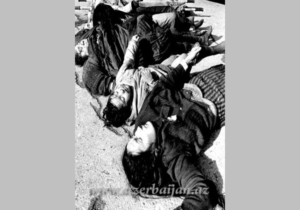 亚美尼亚的武装组织在步兵团的军事力量支持下,对居住在霍贾利的市民进行了残忍的大屠杀。结果如下:613人被杀,其中有63名儿童、106名妇女和70名老人.8个家庭完全被毁.25名儿童失去双亲.130名儿童失去了父母之一.487人受伤,其中有76名儿童.1275人被俘.150人在军事行动中失踪.对该国以及市民的个人财产造成的损失不可估量。总损失相当于五十亿(马纳特)(按照1992年1月4日的价格计算)。